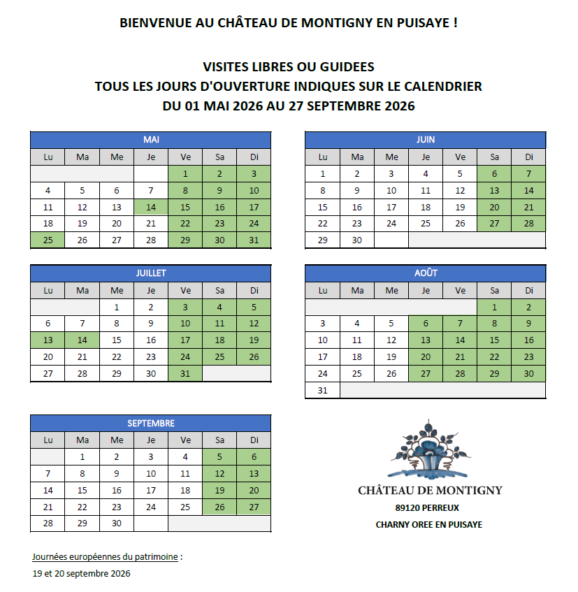*Sauf les 19 et 20 septembre, durant les Journées Européennes du Patrimoine.